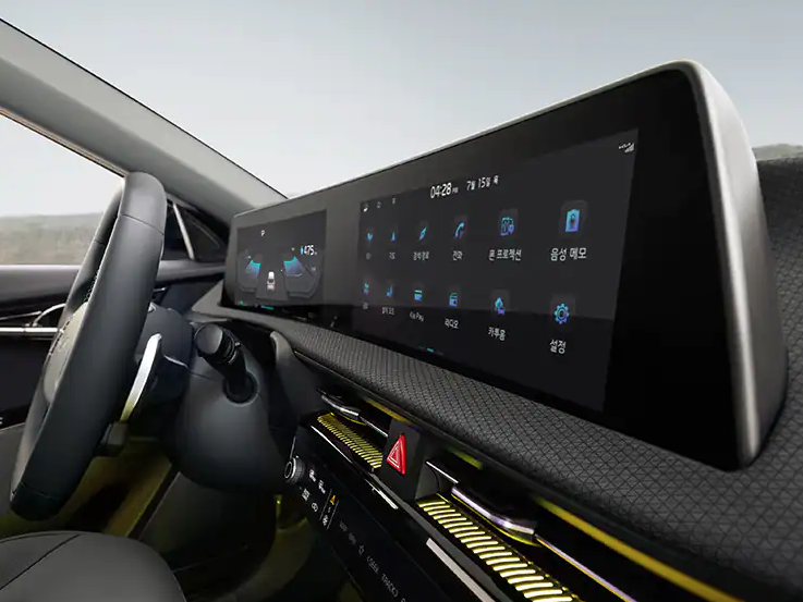 기아 K8에서 첫선을 보인 파노라믹 커브드 디스플레이를 기아 EV6에 적용했습니다. 12.3인치 클러스터와 12.3인치 디스플레이로 시원시원한 화면을 볼 수 있고 세련된 디자인 포인트를 느낄 수 있습니다.