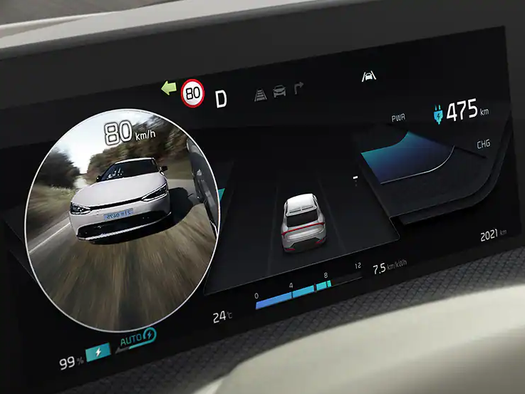 기아 K8에서 첫선을 보인 파노라믹 커브드 디스플레이를 기아 EV6에 적용했습니다. 12.3인치 클러스터와 12.3인치 디스플레이로 시원시원한 화면을 볼 수 있고 세련된 디자인 포인트를 느낄 수 있습니다.
