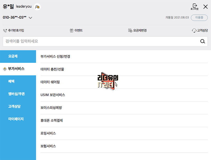 KB 리브모바일 무제한 요금제 개통을 완료 한 후 부가서비스에 보면 데이터 쉐어링 서비스를 신청할 수 있습니다. 무료로 데이터 쉐어링까지 가능하다니 그야말로 혜자 요금제 입니다.