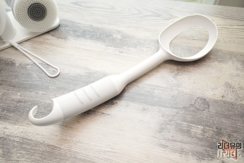 뒤쪽에는 스트랩 걸이가 있습니다. 더욱 안전하게 사용할 수 있도록 손목에 걸 수 있는 센스있는 배려까지 해두었습니다. 기본적으로 잘 미끄러지지도 않지만 혹시 불안한 분들은 스트랩을 걸고 사용하시면 좋습니다. 참고로 롱핸들 이용시에는 스트랩을 빼고 사용해야 합니다.