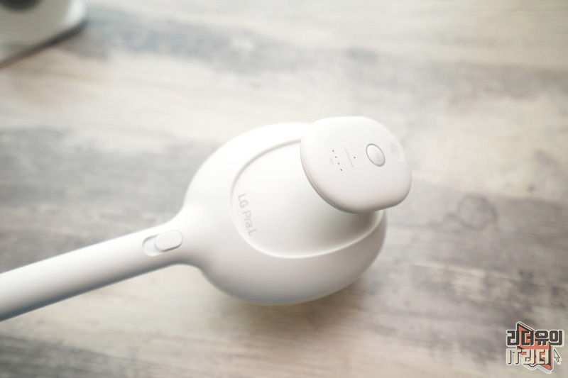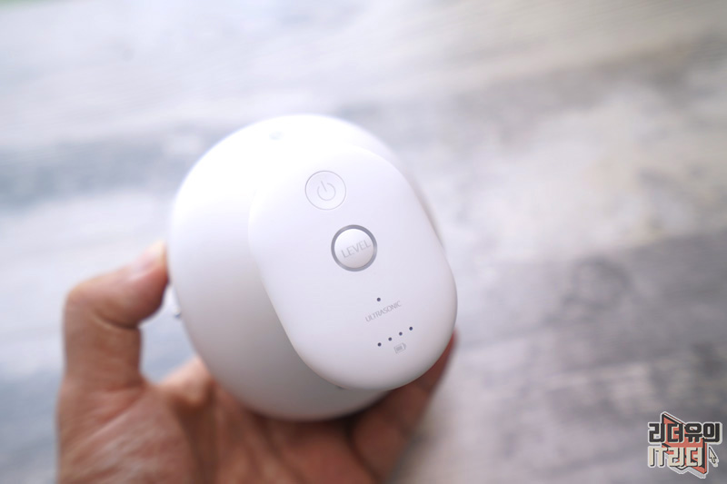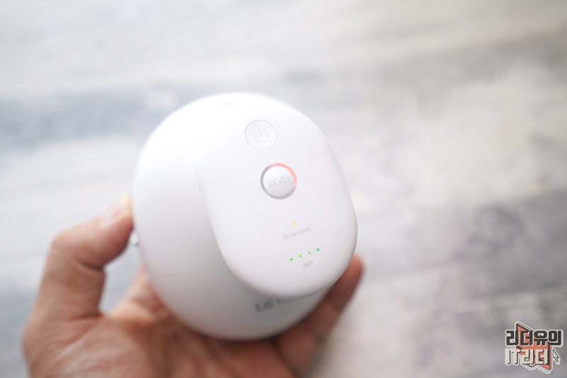 위에는 컨트롤 버튼이 있습니다. 전원 버튼, 3단계 레벨 조절 버튼이 있고 아래에는 ULTRASONIC 초음파 사용 LED, 배터리 LED가 있습니다. 조작 방식이 간단해 어렵지 않게 사용할 수 있습니다.