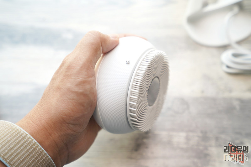 저 사이에 손을 끼는 구조이고 잡았을때 공처럼 안정된 그립감을 제공합니다. 진동 효과에도 흔들리지 않고 원하는 피부 부위를 안정된 그립감으로 사용할 수 있습니다.
