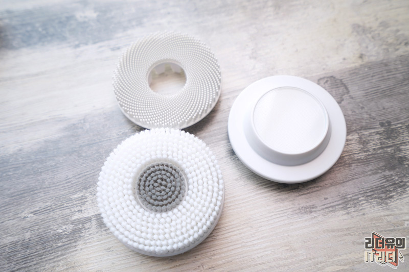 기본으로 장착되어 있는 건 매일 사용하는 데일리 초음파 샤워 브러시 입니다. 재질은 실리콘으로 바디 클렌징을 할 때 이용하는 것입니다. 초음파 진동을 통해 피부 관리를 해주는 특별한 경험을 할 수 있습니다. 개선 효과로는 수분 2배 개선, 각질 2배 제거, 피부결 2.6 배 개선 효과가 팔 기준으로 있다고 합니다. 참고로 1일 1회, 4분간 동작하면 됩니다.