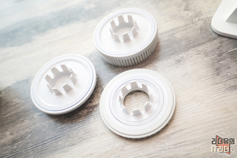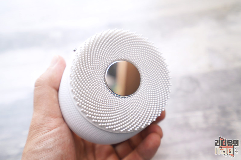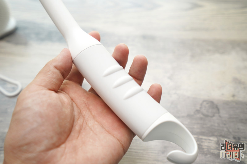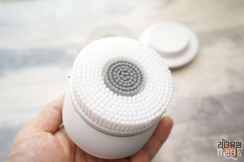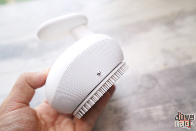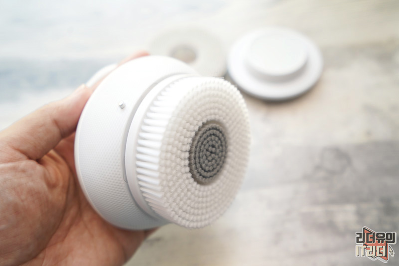 브러시 분리는 본체와 브러시 사이의 틈을 잡고 힘으로 빼면 됩니다. 그럼 초음파 진동 영역 부분만 남고 블러시를 교체할 수 있습니다.