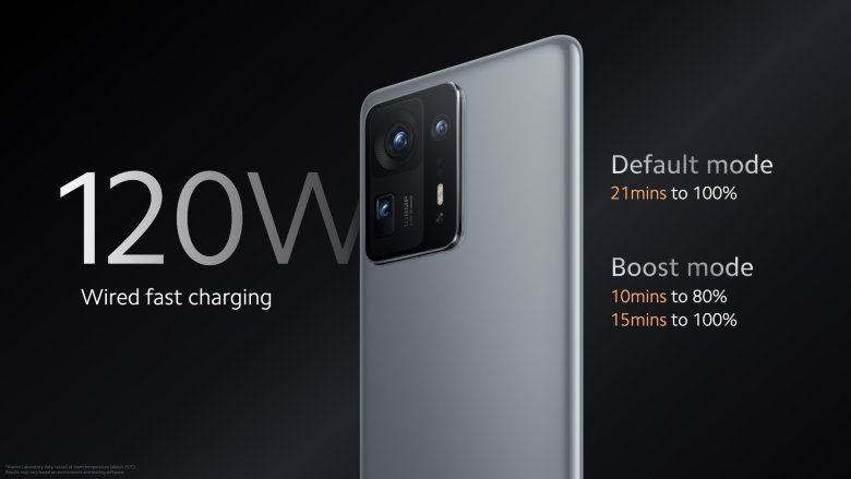 샤오미 미믹스4는 정말 말도 안되는 고속 충전을 제시하고 있습니다. 케이블을 이용해 120W 고속 충전을 가능하게 했습니다. 유선 고속 충전의 경우 부스트 모드시 15분이면 완충이 되고 일반 모드에서도 21분이면 됩니다. 배터리 수명에 영향을 줄 것 같은데 얼마나 사용할지 궁금해지는 부분입니다.