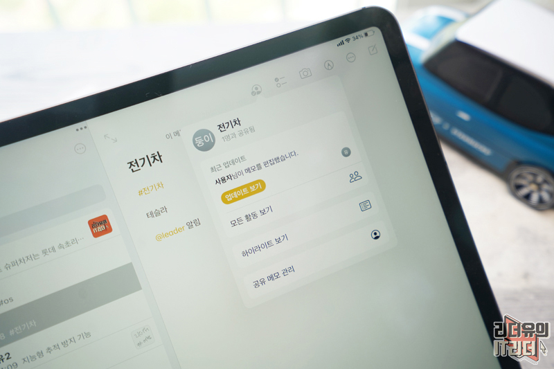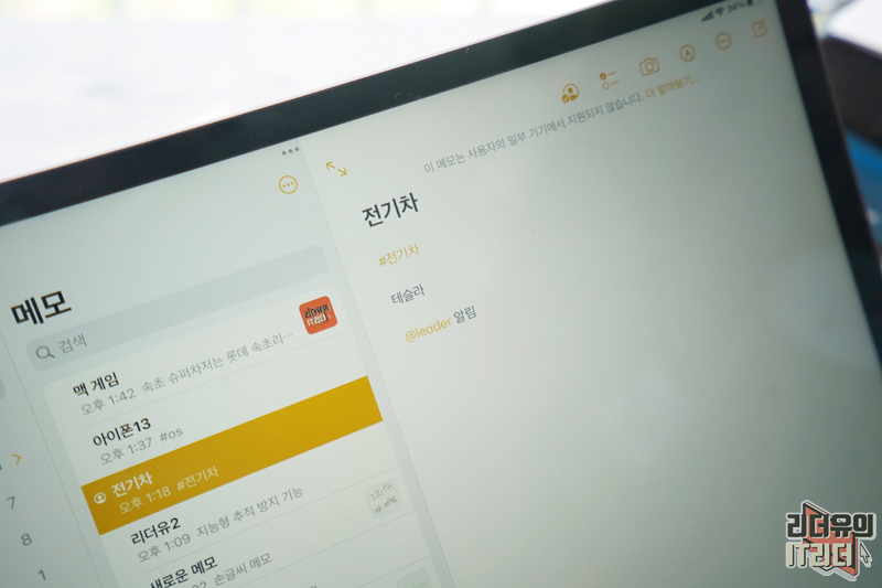 메모를 여러 사람과 동시에 기록하고 편집할 수 있는 메모 공유 기능도 지원합니다. 공유하고 싶은 메모를 선택하고 위에 ... 메뉴를 선택하면 메모 공유 메뉴를 확인할 수 있습니다.