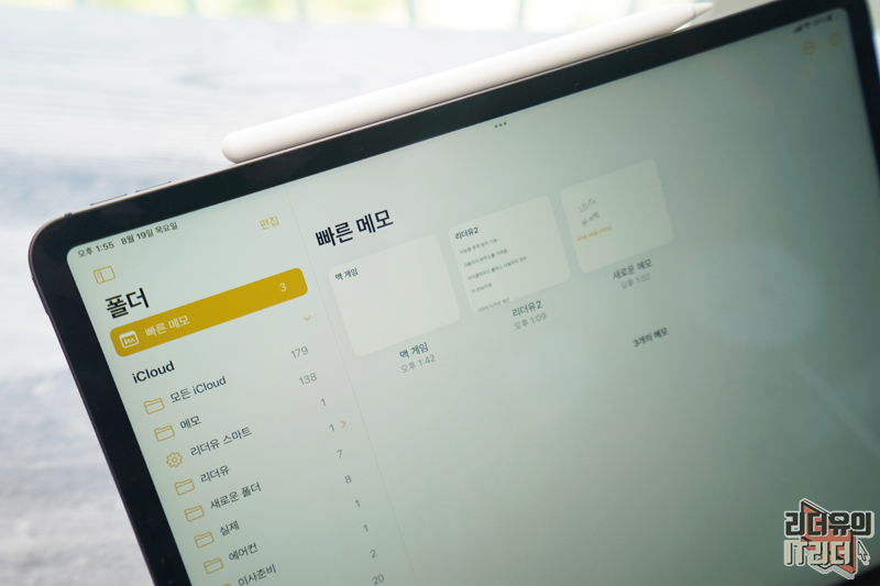 아이패드 iPadOS 15에는 빠른 메모 기능이 있는데요. 화면 우측 하단에서 애플펜슬이나 손으로 끌어 오면 작은 메모창이 나오는 것을 알 수 있습니다.