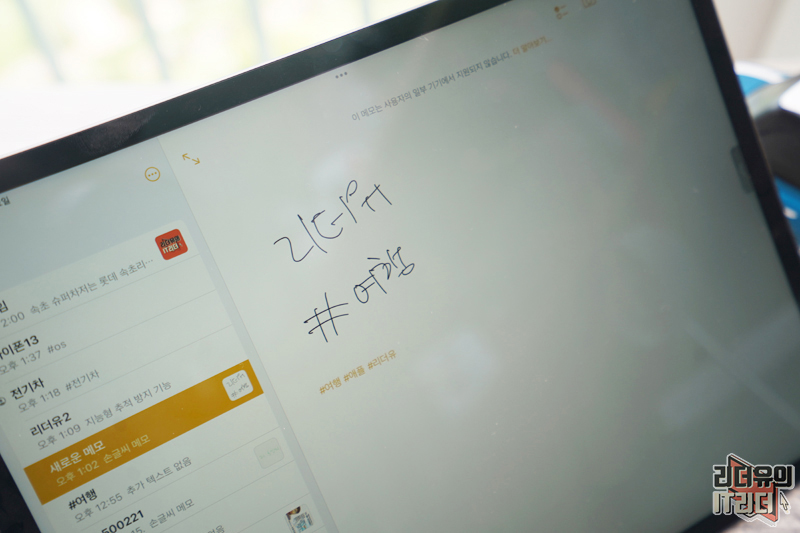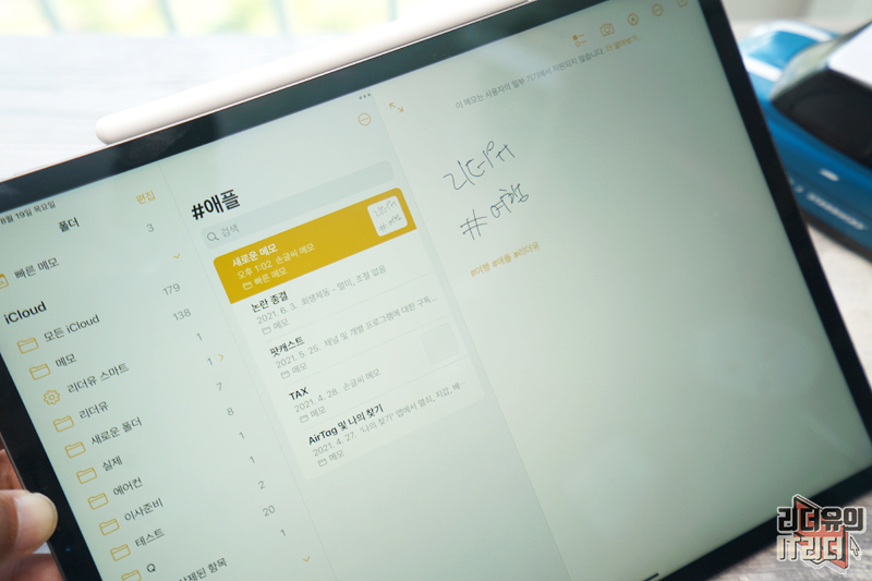 참고로 영어의 경우는 애플펜슬 손글씨로 #하고 영문을 쓰면 태그로 기록이 됩니다. 아직 한글은 지원하지 않고 있는데 한국 유저들도 엄청 많아졌으니 향후 업데이트가 되길 기대해 봐야 겠습니다. 현재 까지는 한글은 키보드로 입력해야 됩니다.