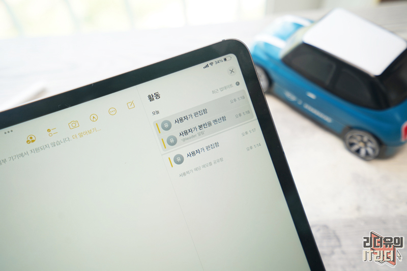 그리고 공유한 사람과는 같이 메모를 작성하고 변경된 내용도 확인이 가능합니다. 사람마다 색상으로 구분해서 보여주고 업데이트한 내역도 볼 수 있습니다.