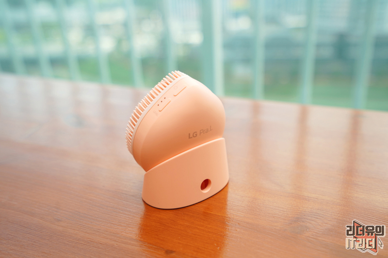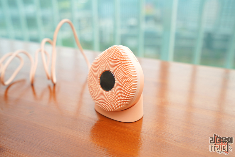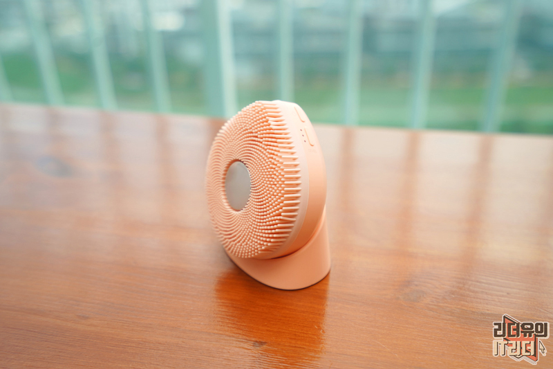 충전 거치대에 올린 모습입니다. 세안을 하면 건조를 해야 하기 때문에 이렇게 실리콘 브러시가 앞으로 나오게 거치가 되어 있습니다.