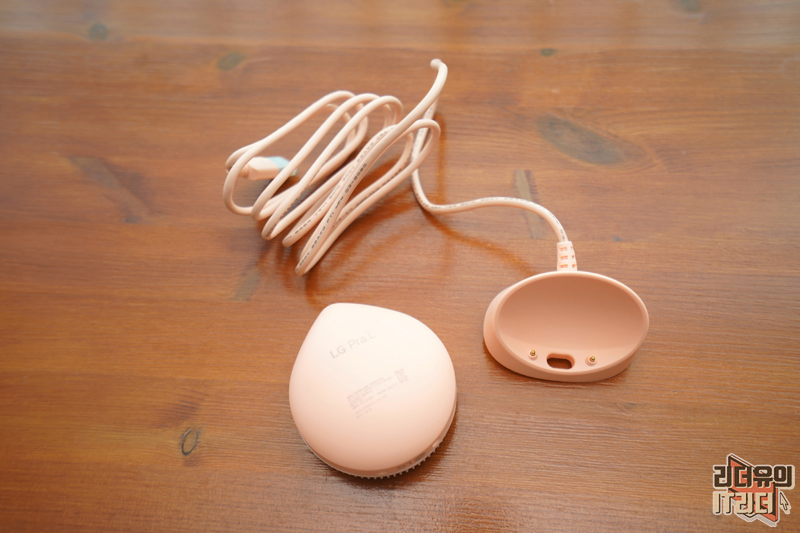 LG 프라엘 워시팝 구성품은 딱 두 가지 입니다. 본체와 충전 거치대로 구성되어 있습니다. 전원 어댑터는 따로 제공되지 않으니 참고하시고요. 케이블이 길게 되어 있어 공간 배치하기에 좋습니다.