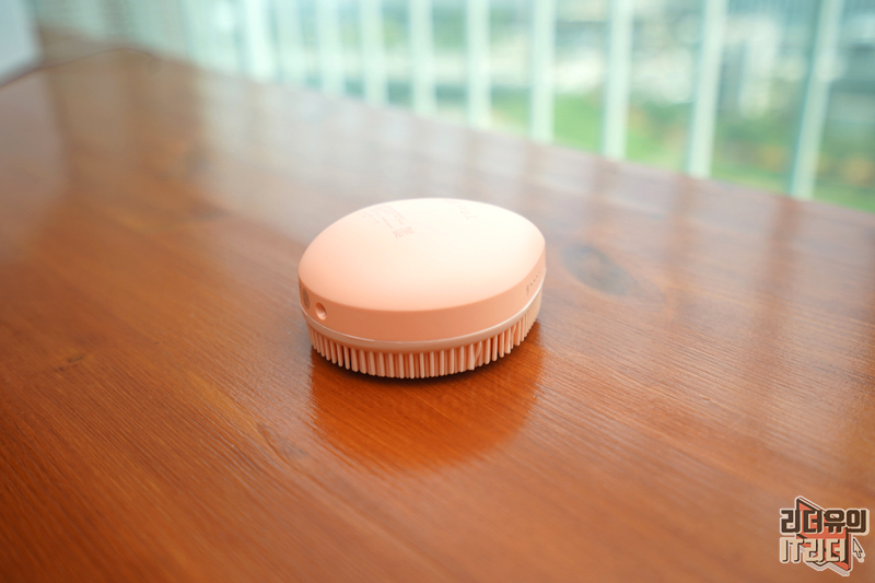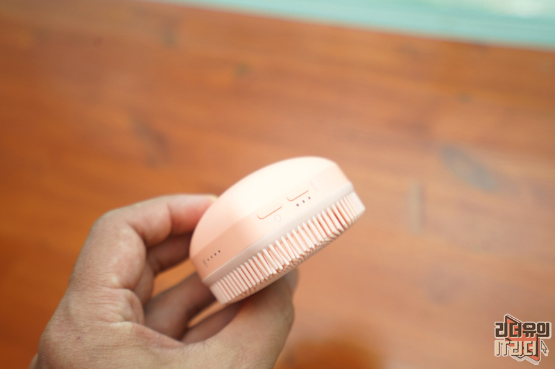 옆에서 본 모습입니다. 아래에는 실리콘 브러시가 있고 그 윗부분은 손에 파지할 수 있는 영역입니다.
