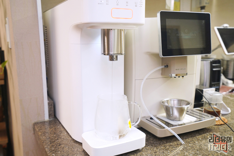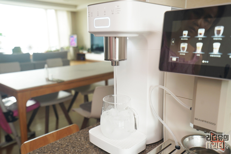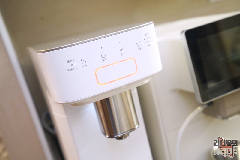 온수도 마찬가지로 순간 가열 방식을 이용하고 있습니다. 그래서 온수를 선택하고 버튼을 누르면 약간 가열되는 시간이 있고 물이 나옵니다. 그 시간이 짧고 원하는 온도로 셋팅이 되서 나오는 똑똑함까지 갖추고 있습니다.