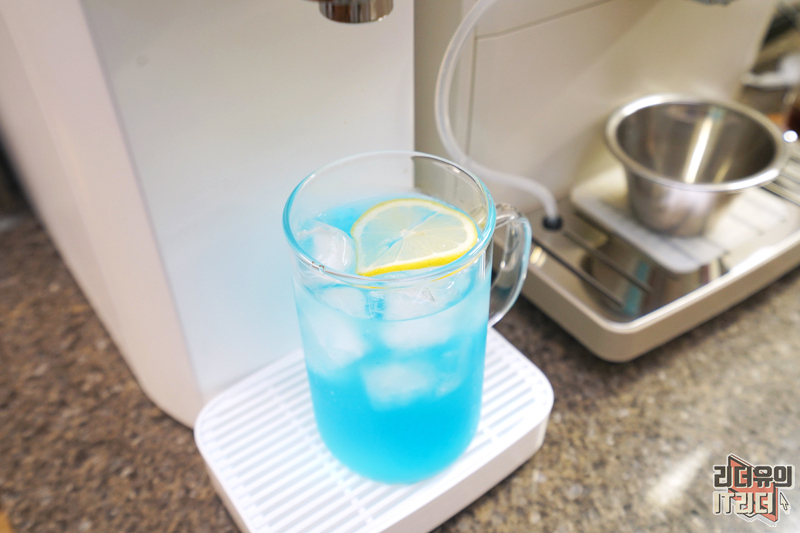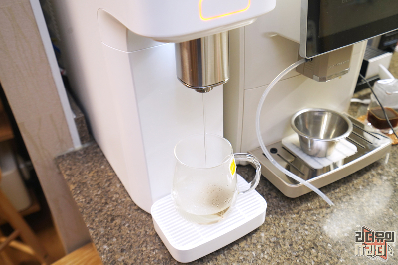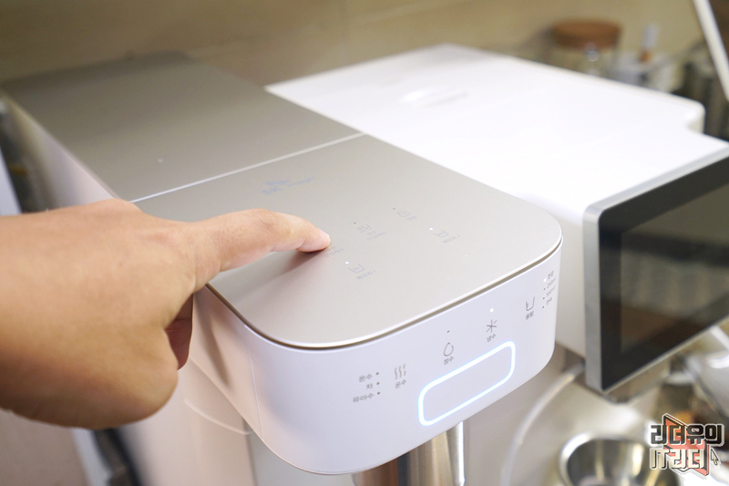 온수도 마찬가지로 순간 가열 방식을 이용하고 있습니다. 그래서 온수를 선택하고 버튼을 누르면 약간 가열되는 시간이 있고 물이 나옵니다. 그 시간이 짧고 원하는 온도로 셋팅이 되서 나오는 똑똑함까지 갖추고 있습니다.