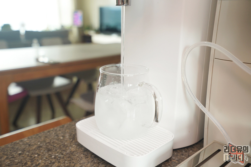 그래서 냉수의 경우는 추출 시에 순간 냉각 방식으로 차가운 물이 나오게 됩니다. 물이 고여있는 방식이 아니라 나올때 순간 냉각으로 나오는 것인데요. 정말 시원한 물을 순간적으로 만들어주니 만족하고 마실 수 있습니다.