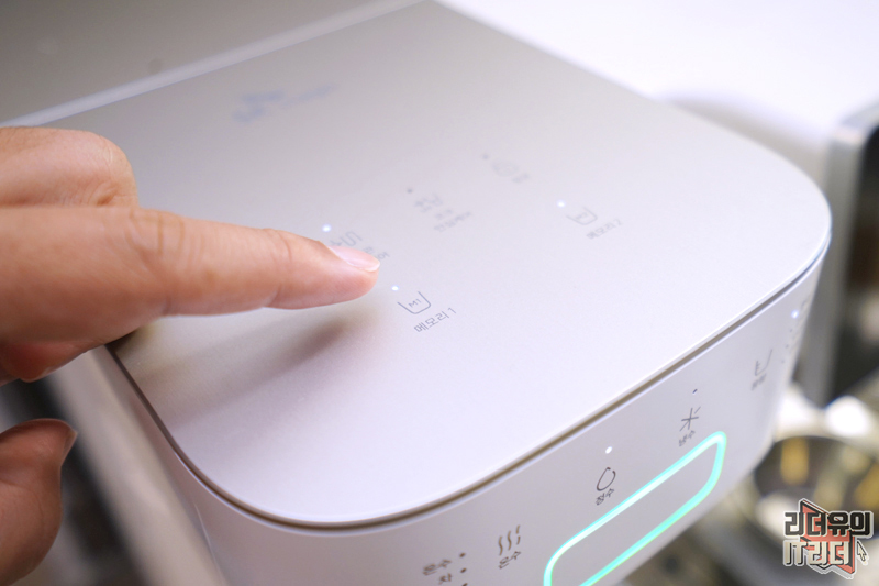 예를 들어서 제가 위에 보여드린 얼음 통 같은 경우 냉수 1리터를 세팅해 사용을 하고 있습니다. 각자가 필요한 양만큼 음용 스타일에 따라 스마트 메모리 출수 기능을 이용하면 더욱 편한 사용성을 느낄 수 있습니다.