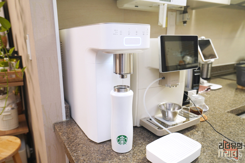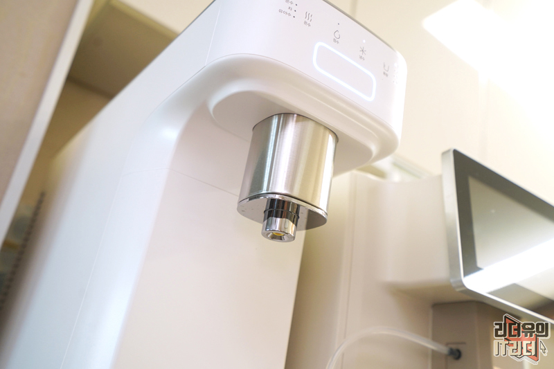 그리고 텀블러 이용시에도 좋습니다. 텀블러도 길이가 길어서 물 받침대 위에서는 받을 수가 없는데요. 그런데 쉽게 분리가 되니 아주 편하게 사용할 수 있습니다. 사용자들이 어떻게 정수기를 사용하는지에 대한 고민이 잘 담겨 있고 이를 아이디어와 기술로 잘 풀어낸 것이 인상적입니다.