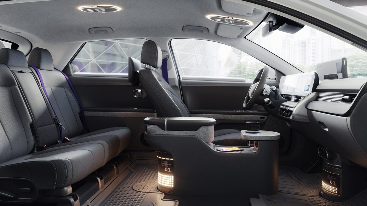 아이오닉5 로보택시는 공간적인 매력도 제시했습니다. 전기차 전용 플랫폼인 E-GMP(Electric-Global Modular Platform)를 적용해 가능해진 평평한 실내 공간으로 여유로운 실내 공간을 느낄 수 있습니다.