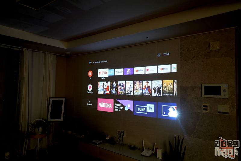 요즘은 빔프로젝터에도 스마트 기능을 넣은 것들이 있는데요. 뷰소닉 4K 빔프로젝터 V151은 스마트 기능이 없습니다. 가격을 저렴하게 가져가면서 화질에 집중했다고 보시면 됩니다. 대신 요즘은 다양한 스마트TV 셋탑박스들이 나와 있고 크롬캐스트도 지원을 잘 하고 있습니다. 그래서 위와 같이 스마트TV처럼 넷플릭스, 웨이브, 왓챠 등 자유롭게 이용할 수 있습니다.
