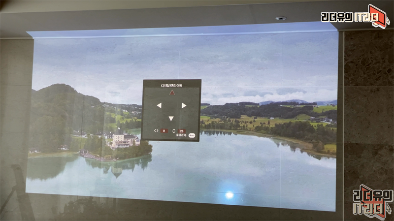 그리고 렌즈 시프트 기능도 지원해 빔프로젝터 상하 좌우를 따로 조절하지 않고 디지털 렌즈 이동을 할 수 있습니다. 화질 저하 없이 조절이 가능한 기능인데요. 상하 좌우 최대 20% 가량씩 이동이 가능합니다. 설치 위치의 제약을 덜어주는 매력적인 기능입니다.