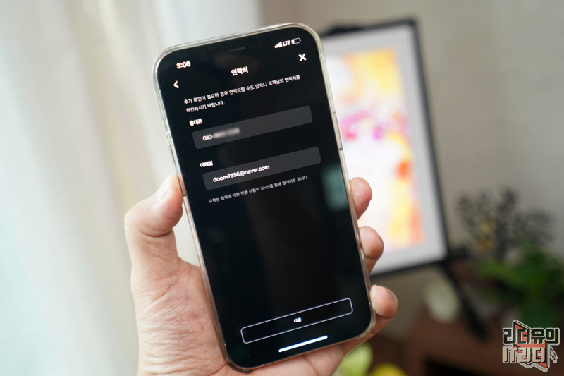 연락처와 이메일을 입력합니다.