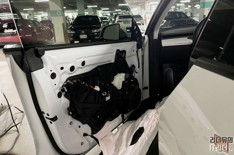 문을 뜯고 유리를 맞추고 있습니다. 다른 자동차 회사들도 이렇게 서비스 해주면 더 좋아하겠죠.