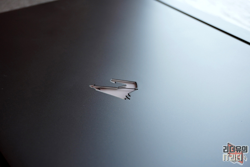 가운데에는 어로스의 브랜드 이미지를 넣었습니다. 보통 이미지를 새기는 수준이지만 프리미엄 게이밍 노트북 답게 저 부분에 LED 무드등이 들어오게 처리했습니다.