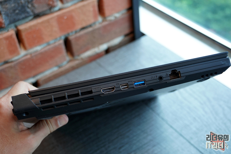 반대쪽면에는 HDMI 2.1, mini DP 1.4, USB 3.2(gen.1), 콤보 오디오 잭, RJ45 이더넷 단자가 있습니다. 프리미엄 게이밍 노트북 답게 확장성도 뛰어나고 최신의 포트를 제공해 가장 빠르게 데이터 전송을 할 수 있도록 했습니다.