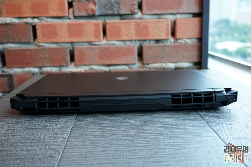 기가바이트 어로스 15P XD 후면을 보면 스포츠카의 배기구를 보는 것처럼 멋스러운 라인을 볼 수 있습니다. 열을 효과적으로 배출하는 것은 기본이고 디자인까지 고려해 고급스러움을 보여주고 있습니다.