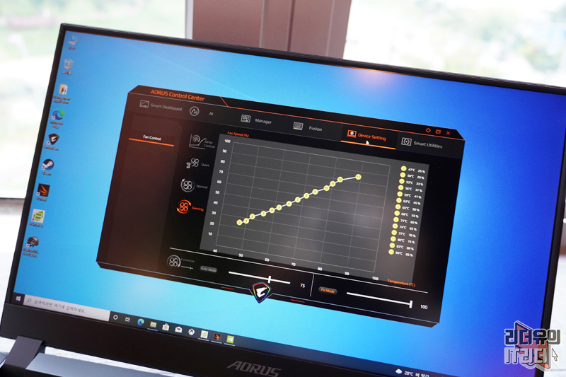 디바이스 셋팅에서는 팬 컨트롤 상황을 볼 수 있습니다. 상황에 맞게 열관리를 하는 것인데요. 어떻게 관리가 되는지 한눈에 확인이 가능해 노트북 상태를 알 수 있습니다.