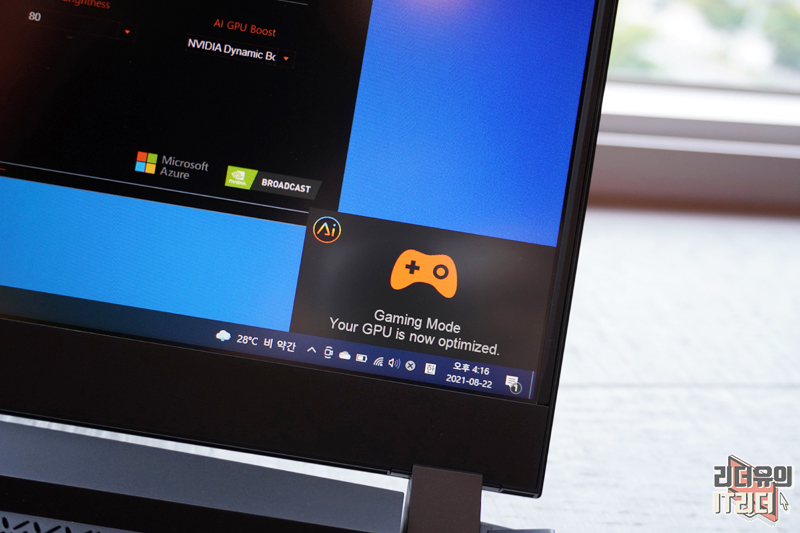 AI에서는 사용하는 환경에 따라 알아서 노트북이 사용모드를 맞춰주는 기능입니다. 크리에이터 모드, 터보 모드, 게이밍 모드, 맥시멈 배터리 모드를 AI가 판단해서 설정을 해줍니다. 해당 모드에 맞게 키보드 효과, 키보드 백라이트, 패널 컬러, 밝기, CPU 부스트가 조절이 됩니다.