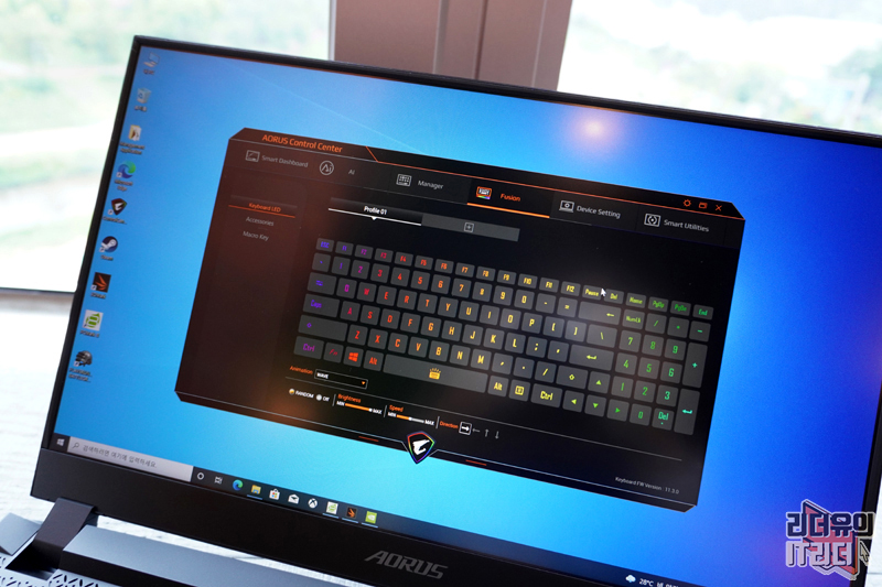기가바이트 어로스 컨트롤 센터 앱을 들어가면 키보드 설정을 시각적으로 보면서 설정할 수 있게 지원합니다.