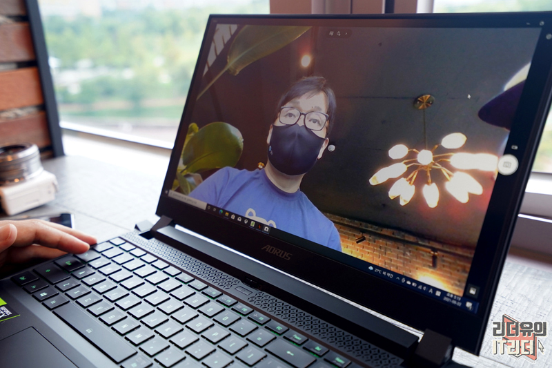 기가바이트 어로스 15P XD는 키보드 가운데 상단에 카메라가 위치해 있습니다. 요즘은 노트북 사용시 카메라 해킹을 걱정하는 사람들도 많은데요. 그래서 기가바이트 어로스 15P XD는 셔터를 적용해 사용하지 않을때는 닫아둘 수 있게 했습니다.