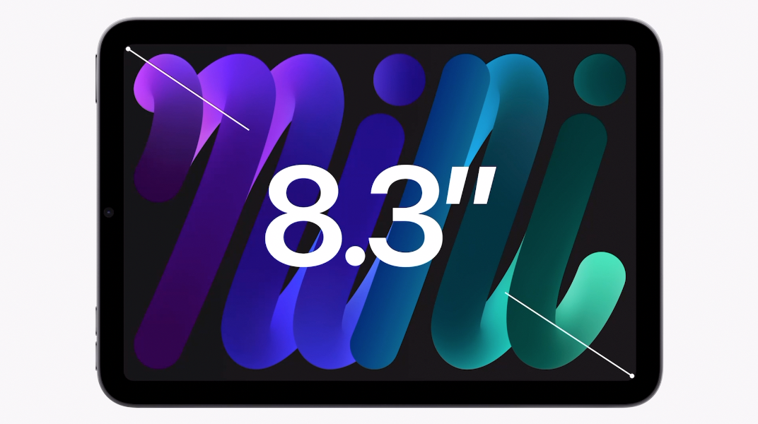 아이패드 미니 6세대는 8.3인치로 화면이 커졌습니다. 기존 아이패드 미니 5세대는 7.9인치 였습니다. 리퀴드 레티나 디스플레이고 500니트 밝기, P3 넓은 색영역 지원, 반사 방지 코팅, 트루톤 기술, 전면 라미네이션 기술을 갖추고 있습니다.