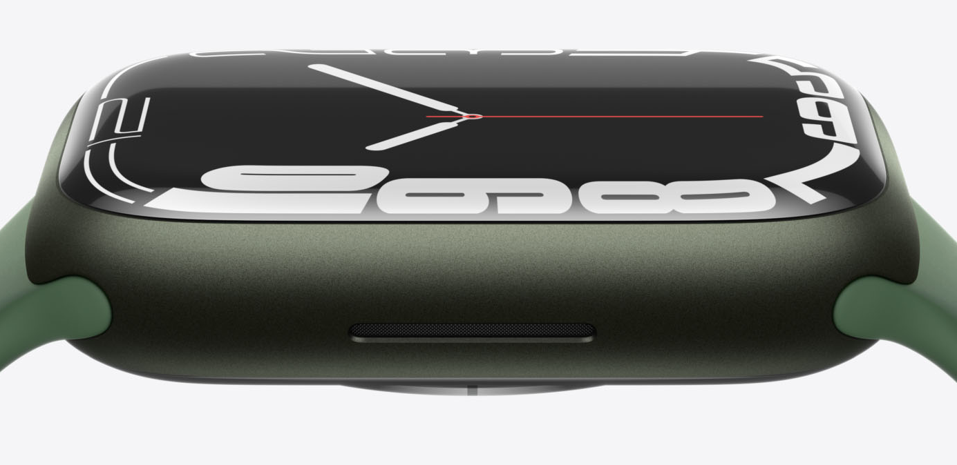 애플워치 시리즈 7의 가장 큰 변화 포인트는 화면 사이즈가 달라졌다는 것입니다. 애플워치 시리즈6에 비해 20% 화면 면적이 커졌는데요. 이는 베젤이 전작 보다 40% 더 얇아졌기 때문입니다. 베젤 두께가 1.7mm 줄었습니다.