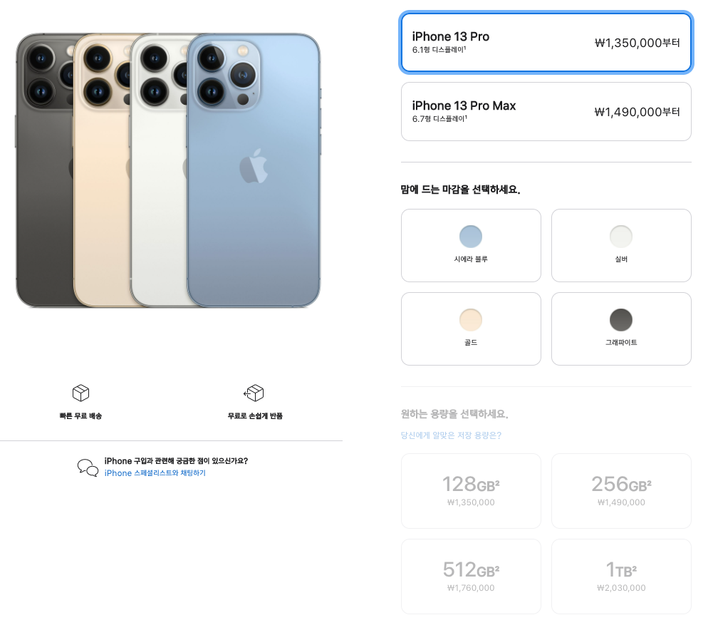 7. 아이폰13 프로, 아이폰13 프로 맥스 가격, 용량