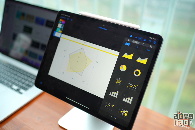 레이더 차트는 키노트, 페이지스, 넘버스 11.2 버전에 공통적으로 적용된 변화입니다. 여러 변수를 한 번에 시각적으로 비교하여 데이터의 유사점과 차이점을 쉽게 표시할 수 있는 차트라서 활용도가 좋을 것으로 보입니다.