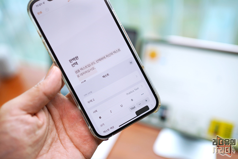 아이폰에서는 빠른 포맷 막대를 지원해 단락 스타일, 텍스트 포맷, 정렬, 목록 스타일 등을 빠르게 변경할 수 있습니다. 아이폰에서 더 쉽게 페이지를 사용할 수 있게 한 변화입니다.