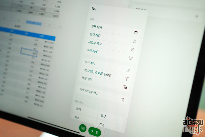 빠른 공식을 지원해 데이터를 합계, 평균 또는 개수로 즉시 표시하며 추가적인 옵션으로 퍼센트 및 누계 값을 표시할 수 있습니다.