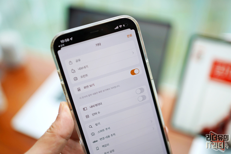 화면 보기를 체크하면 아이폰에서 문서를 더 쉽게 읽고 편집할 수 있습니다. 글자 사이즈도 커졌고 사진도 그에 맞게 크게 보이니 화면 보기가 확실히 좋아졌습니다.