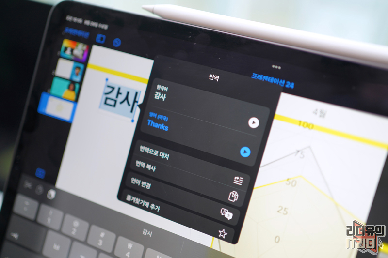 이제 키노트, 페이지스, 넘버스 11.2에서는 선택한 텍스트를 최대 11개 언어로 번역하고 번역을 대치해서 넣을 수도 있습니다.