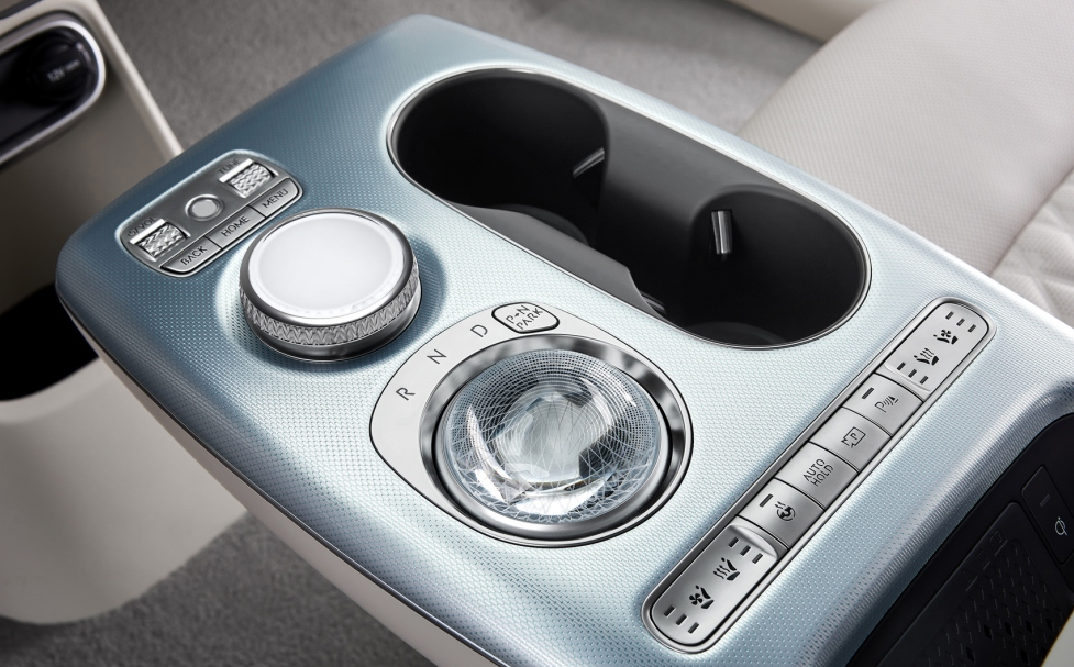 그리고 클리스탈 스피어라는 독특한 구 모형의 변속기를 넣어 시동 OFF 시에는 감각적인 디자인과 무드등 효과를 주고 시동을 ON 하면 변속 조작계를 사용할 수 있는 색다른 감성을 보여주고 있습니다.