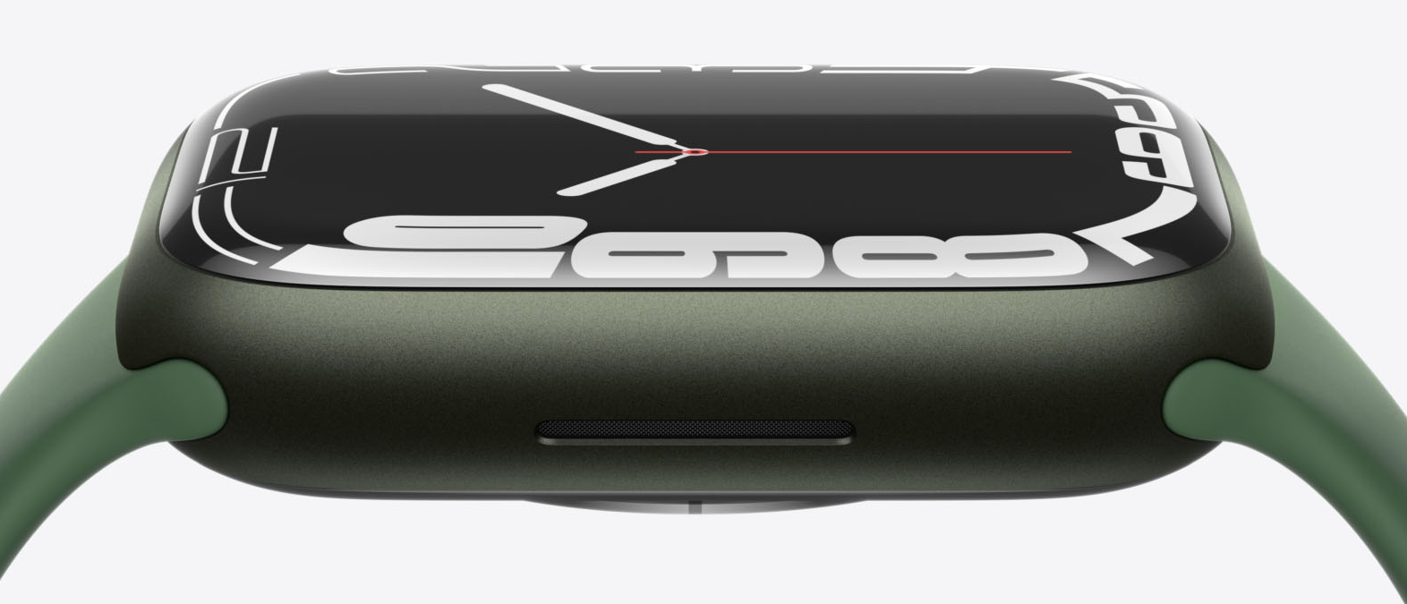 애플워치 시리즈7은 더욱 부드러운 곡면 형태의 모서리로 개선된 디자인 매력을 느낄 수 있습니다. 배젤이 얇아진 디자인이라 새롭게 디자인을 했고 애플워치 시리즈7만의 새로움을 느낄 수 있는 포인트 입니다.