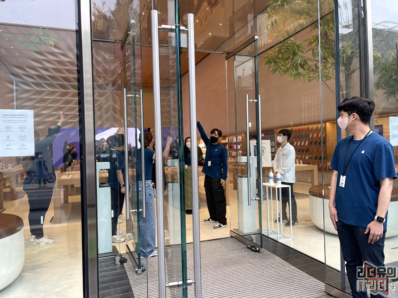 아침 8시 카운트다운과 함께 애플스토어 가로수길이 오픈되었습니다. 기다린 순서대로 들어갈 수 있게 했는데요. 들어가는 인원을 제한해 안전하게 애플스토어를 이용할 수 있게 했습니다.