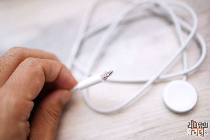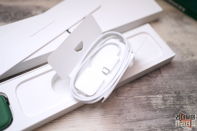 애플워치7 구성품은 충전 케이블이 들어 있는데요. 이번에 USB-C 타입의 단자로 변경이 되었습니다.