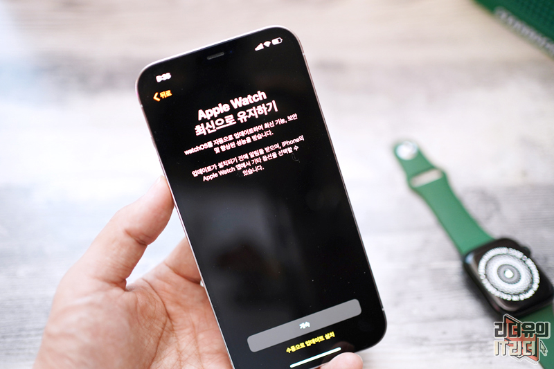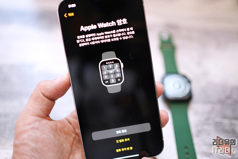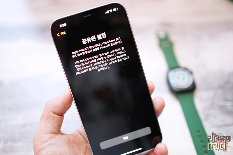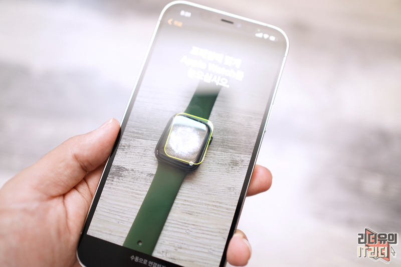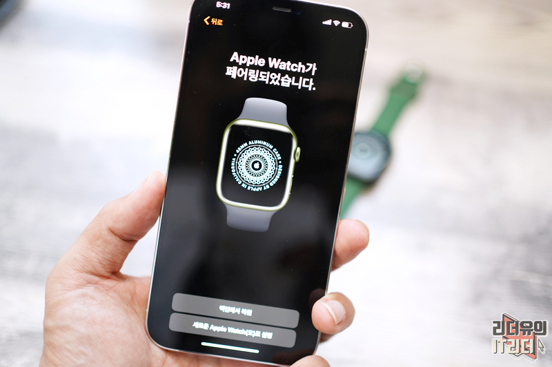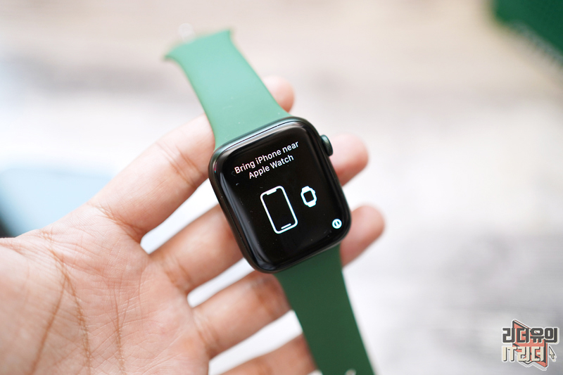 애플워치7에 독특한 무늬가 나오면서 아이폰과 연결될 준비를 합니다.