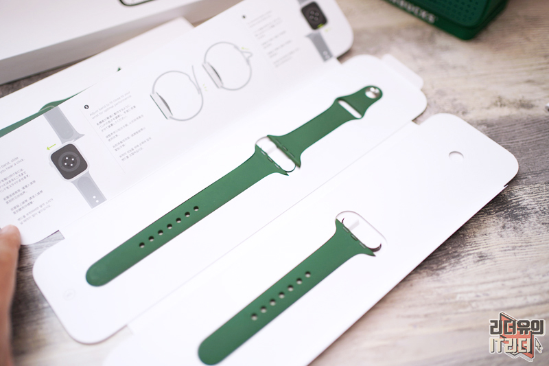애플워치7 본체 패키지를 오픈하면 센스있게 애플워치7 그린을 보호하고 있는 종이도 그린 색상을 적용했습니다. 이런 디테일함은 애플이 정말 잘 하고 있죠.