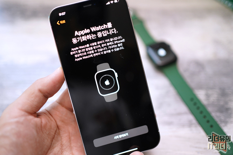 애플워치7에서도 아이폰과 연결 하는 화면이 나오면서 연결 준비중임을 알 수 있습니다.