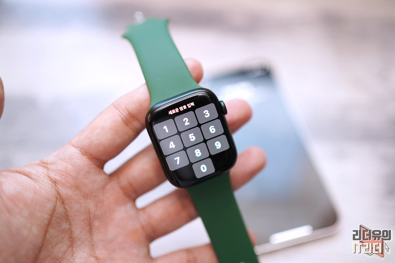 암호는 애플워치7에 입력해서 설정을 하게 됩니다. 화면 사이즈 커진거 보세요. 버튼 사이즈가 커져서 누르기 쉬워졌고 쾌적한 화면을 볼 수 있습니다.