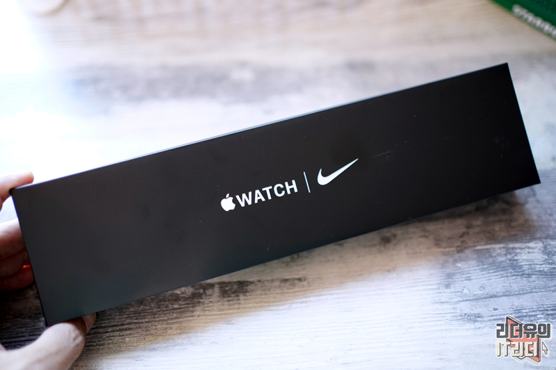 애플워치7 나이키 에디션 패키지입니다. 나이키 에디션은 블랙 패키지로 일반 모델과 확실한 차이를 주고 있습니다. 그리고 나이키 로고가 들어가 있는 것을 볼 수 있습니다.